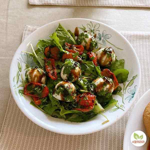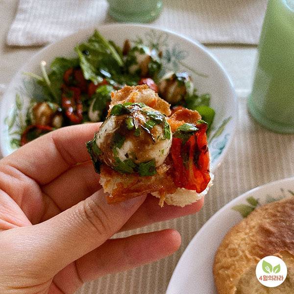 향긋하고 부드러운 참나물과 고소한 생모짜렐라치즈 미니볼이 만났어요.