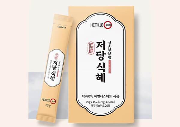 ‘헤밀레 저당 식혜’는 당 걱정, 칼로리 걱정 없이 즐길 수 있는 식혜 제품이다. 우리 땅에서 자란 국내산 보리를 발아시킨 엿기름을 농축액으로 진하게 담았다. 설탕을 대체할 수 있는 헤밀레 스위트를 사용해, 대체 감미료 특유의 씁쓸한 맛이 없이 청량감이 감도는 맛있는 저당 식혜로 완성했다. 밑바닥에 가라앉는 밥알을 빼서 편하고 깔끔하게 마실 수 있도록 했다. 15포가 든 한 박스의 판매가는 13,400원이다.
