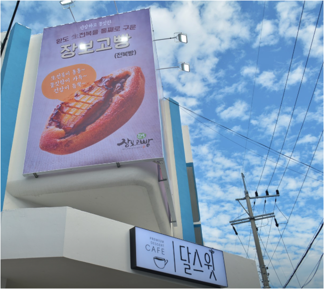 든든하게 한 끼 하고 나면 꼭 찾게 되는 게 카페죠. 완도 읍내에 조용히 자리한 감성 카페 ‘달스윗’은 디저트와 커피 모두 수준급이에요. 내부 인테리어가 따뜻하고 감성적이라 완도 여행의 여운을 천천히 즐기기에 딱 좋은 공간이에요. 달스윗에서는 완도 전복 한마리가 통쨰로 들어간 전복빵을 판매해요. 선물용으로도 인기가 높고, 냉동해두고 간편하게 꺼내먹기에도 좋아요. 전국 택배 주문도 가능하답니다.