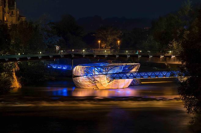 특히 해가 질 무렵 파란 조명이 하나둘 켜지는 무어인젤은 마치 강 위에 착륙한 UFO처럼 몽환적인 분위기를 선물해 준답니다.