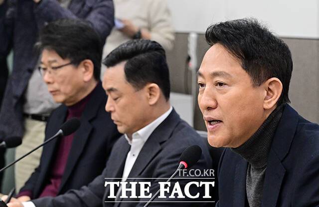 [더팩트ㅣ임영무 기자] 오세훈 서울시장이 4일 오전 서울 중구 서울시청에서 열린 BTS 컴백 프로젝트 관련 현안 점검회의에 참석해 모두발언을 하고 있다.