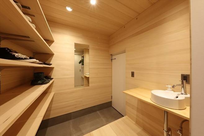 문을 열고 들어가면 현관과 구분된 또 다른 출입구가 있다. 가족이 주로 사용하는 이 ‘실제 현관’은 넉넉한 수납 공간을 자랑한다.