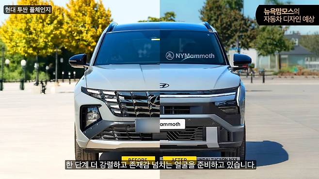 최근 공개된 위장막 차량과 예상도에 따르면, 신형 투싼은 기존의 파라메트릭 디자인보다 훨씬 더 대담하고 직선적인 외관을 채택하며, 미래지향적인 스타일을 전면에 내세운다.