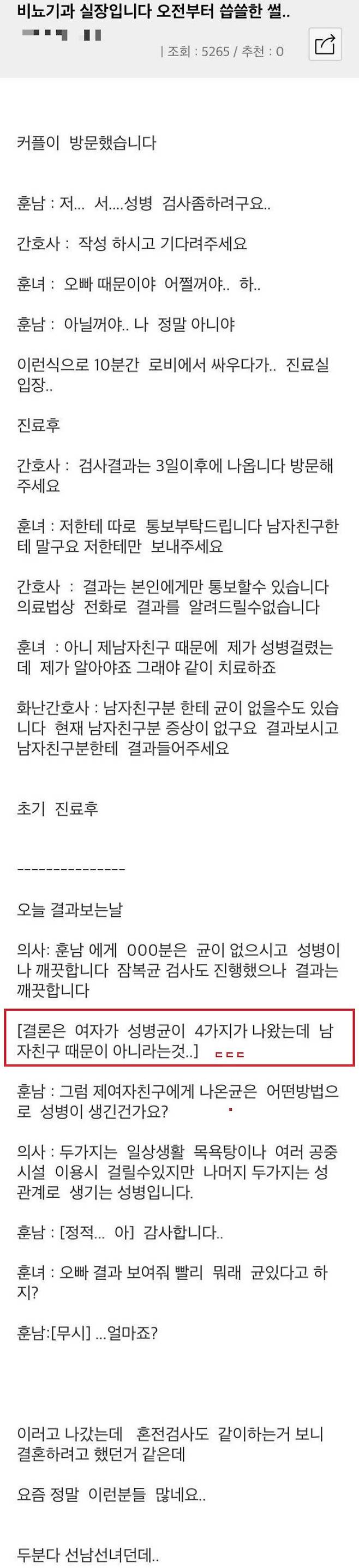 성병 때문에 비뇨기과 방문한 커플의 최후