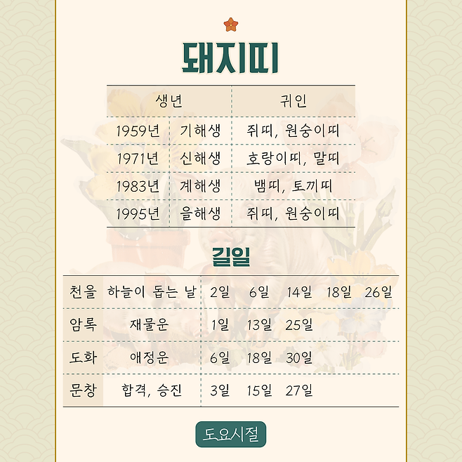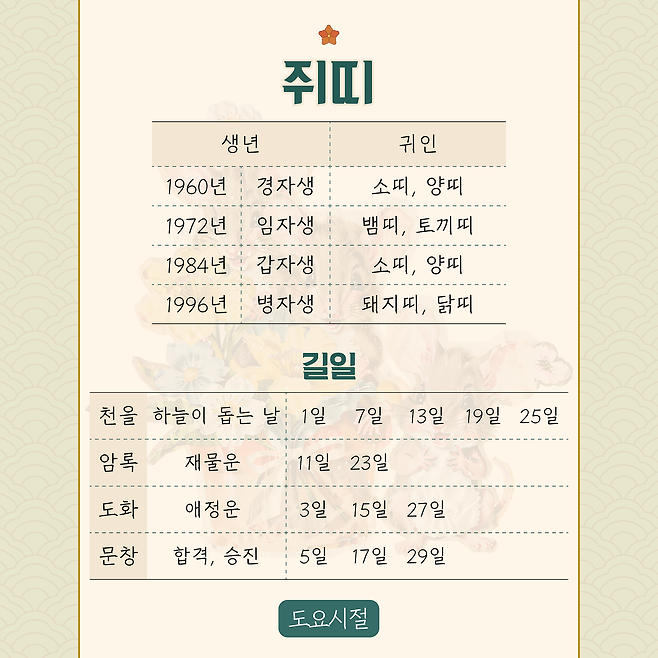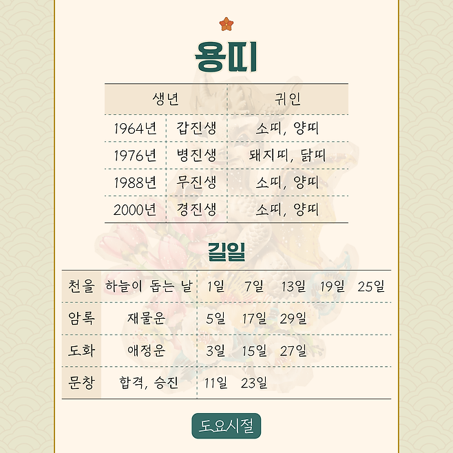 안녕하세요 도요입니다.각 띠별 7월 함께하면 대박나는 귀인과 길일을 알려드립니다.양력기준이니 참고하여 활용해주세요!