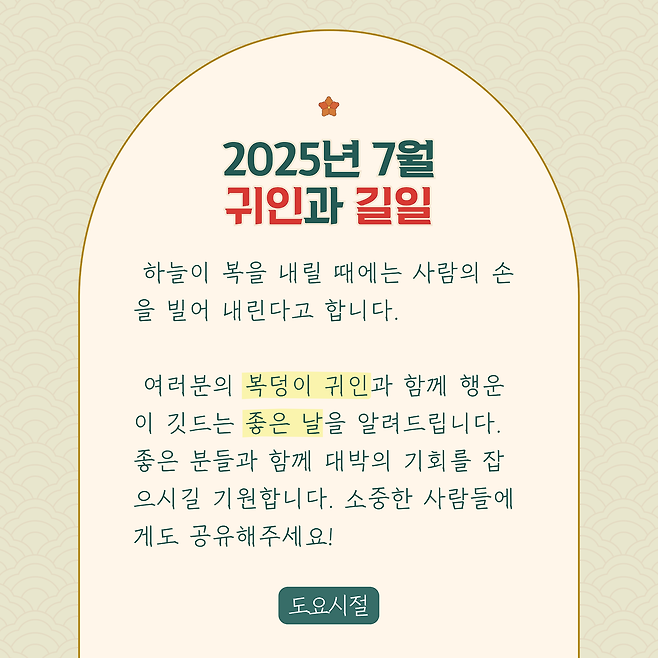 2025년 7월 함께하면 대박나는 귀인과 길일!