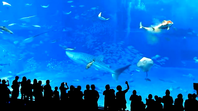 영상에 등장하는 아쿠아리움은 일본 최대 규모의 ‘추라우미 수족관’, 돌진해 죽은 물고기는 참다랑어류인 참치로 밝혀졌다.