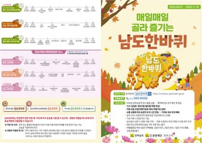 또한 반려동물 동반이 가능한 테마 노선과 1박 2일 일정의 숙박형 ‘남도 한 바퀴’도 함께 운영할 예정이다. 기존의 당일형 관광을 넘어선 여행 콘텐츠로 상품 다양성이 한층 강화됐다.