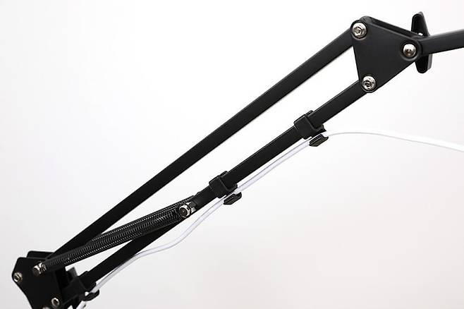 암이 서로 이어지는 각 관절 부위마다 레버가 있어서 원하는 각도로 조정 후 레버를 조여주면 단단하게 고정할 수 있다.