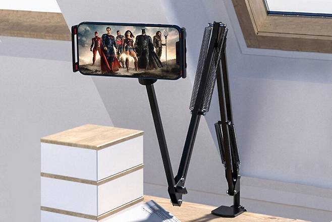 스마트폰이나 태블릿PC 등을 사용할 때 장시간 사용한다면 손에 들고 있기가 쉽지 않다. 이럴 때를 위해 거치대를 사용하게 되는데, 책상에 올려두는 형태의 거치대를 사용하기 힘든 환경도 있다. 특히 침대에서 사용할 때는 거치대를 올려둘 곳이 없는데, 아크로 핸드폰 자바라 거치대를 사용하면 책상이나 침대에서 스마트폰과 태블릿PC를 간편하게 고정해서 손대지 않고 쓸 수 있다.