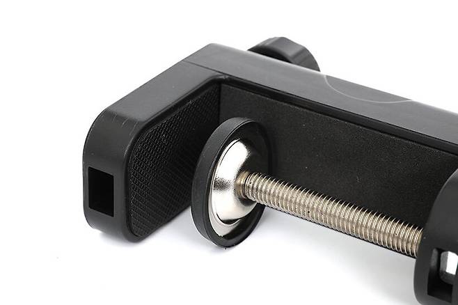 침대 헤드나 책상 등에 브라켓 본체를 고정해주는 역할을 하는 클램프는 최대 4.5cm 두께까지 고정할 수 있으며, 별도의 공구 없이 손으로 쉽게 고정할 수 있도록 큼직한 손잡이를 채택했다.