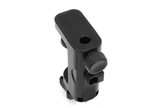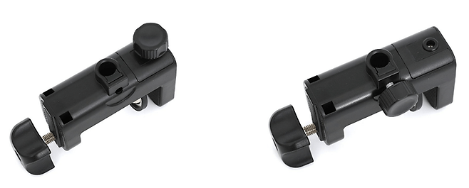클램프 옆면을 보면 브라켓을 끼우는 구멍이 하나 더 보이는데, 브라켓 고정 손나사를 빼서 옮겨 끼우면 클램프의 설치 방향을 90도로 바꿀 수 있다.