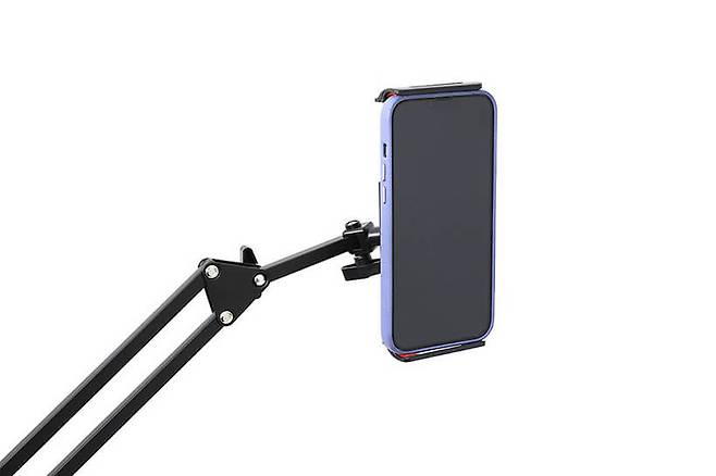 아크로 핸드폰 자바라 거치대는 이중 스프링 구조로 무거운 스마트기기를 단단하게 잡아주며, 관절 고정 레버로 기울어짐 없이 완벽하게 고정해준다. 여기에 볼헤드 방식의 홀더를 적용해 방향과 각도 조절이 더욱 자유로우며, 19cm까지 폭 조절이 가능해 대형 태블릿PC까지도 거치할 수 있다. 또한 방향을 바꿀 수 있는 클램프를 제공해 책상뿐만 아니라 침대 헤드에도 불편 없이 고정할 수 있어서 일반적인 업무 환경이나 화상 채팅 및 영화 감상 등 다양한 용도로 사용하기에 부족함이 없다.