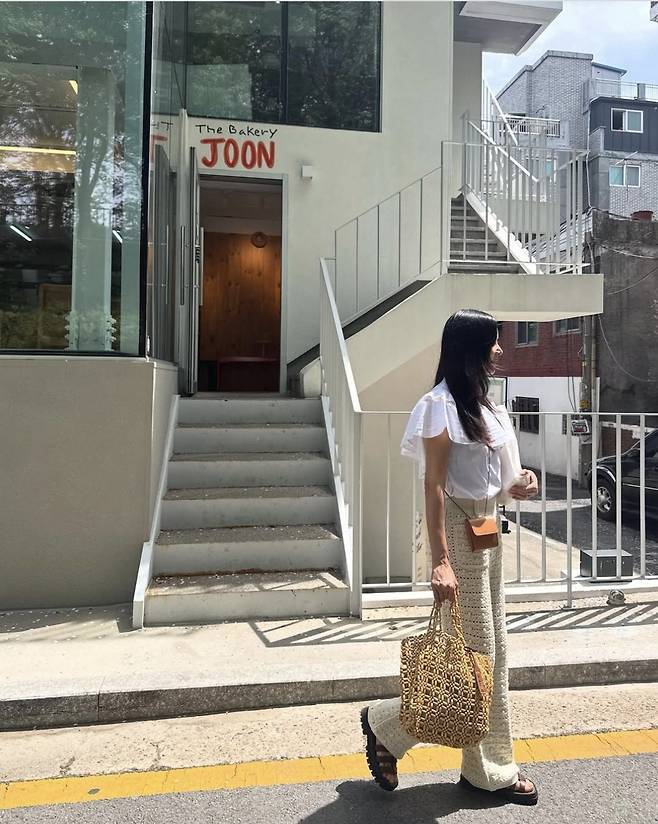 내추럴한 헤어스타일과 라탄 백, 미니 크로스백의 조합은 여유로운 라이프스타일까지 암시했습니다.