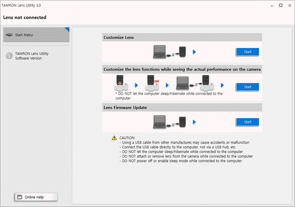 50-400mm 렌즈와 마찬가지로 렌즈 하단에 USB-C (USB Type-C) 포트가 달려있는데 탐론이 독자 개발한 전용 소프트웨어 '탐론 렌즈 유틸리티(TAMRON Lens Utility)'를 사용하여 렌즈에 탑재한 포커스 세트 버튼 기능을 바꾸거나 최신 렌즈 펌웨어로 업데이트 할 수 있다.