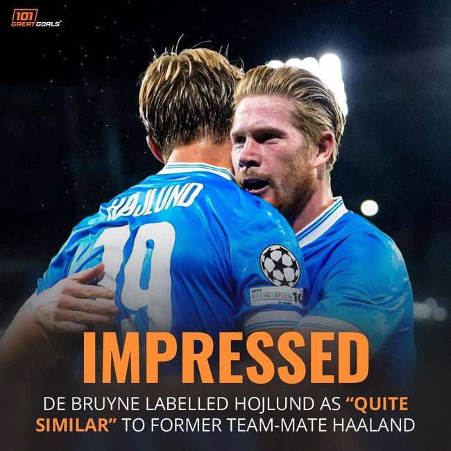 '이게 홀란이야 호일룬이야?' 맨유 떠나 다른 사람 됐다...KDB 깜짝 극찬! "호일룬, 홀란과 매우 비슷해"