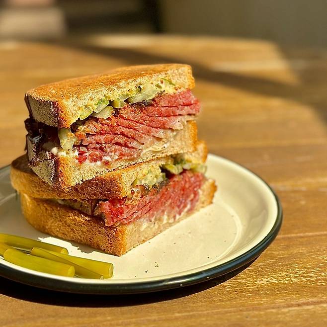 고트델리의 파스트라미 샌드위치는 파스트라미의 고장이라 할 수 있는 뉴욕에서 팔아도 손색없을 만큼 맛있다. ‘파스트라미’는 소의 양지머리를 통째로 향신료와 양념을 넣은 소금물에 담가 염지한 후 건조하고 훈연한 것이다. 양지머리는 소고기 중 싼 부위지만 질기다는 단점이 있다. 가난한 미국의 이민자들이 주로 싼 가격에 양지머리를 구해 최대한 부드럽게 먹기 위해 파스트라미를 많이 조리했다. 육향 강한 양지머리를 장시간 조리한 파스트라미는 다른 햄과 비교할 수 없을 정도로 고기를 먹는 기분을 제대로 전달한다. 고트델리는 호밀빵에 잘 조리한 파스트라미를 제법 두툼하게 썰어 올리고 박력 있게 썬 오이피클과 딜, 머스터드소스를 곁들여 샌드위치로 낸다. 갓 구운 고기를 이로 찢고 짓이겨 먹는 듯한 상당한 만족감에 새콤달콤한 즙이 풍성한 오이피클이 더해져 입이 정말 즐겁다. 고트델리를 처음 찾는 사람 중 대다수가 잠봉뵈르 샌드위치를 선택하는데, 꼭 ‘올드스쿨파스트라미 샌드위치’를 먹어보길 바란다. 참고로 서촌에도 매장이 있다.