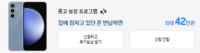 삼성전자도 애플과 유사한 트레이드 인 서비스가 있다. 삼성닷컴과 갤럭시 캠퍼스에서 새로운 스마트폰을 구매하고 기존 갤럭시 단말기를 반납하면 중고매입시세에서 추가 보상 혜택을 주는 것이다. 하지만 최근 출시한 갤럭시S23 FE 구매 고객에게만 한정적으로 제공하는 서비스다.