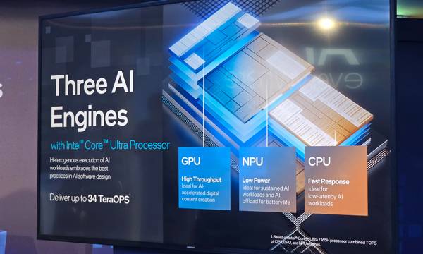 AI 처리는 13세대까지는 GPU와 CPU를 사용해서 AI 워크로드를 처리하여 CPU 및 GPU 고유의 작업에 부가적으로 AI를 돌리면서 성능에 영향을 미치게 되는데, 인텔 코어 울트라 프로세서는 워크로드를 분산시킬 수 있는 NPU를 도입함으로써 개발자들이 본인의 앱을 NPU만 사용하거나 NPU, CPU, GPU를 모두 사용할 수 있다고 설명했다.