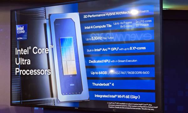 인텔 코어 울트라 프로세서는 3D 퍼포먼스 하이브리드 아키텍처, 인텔 4 공정 기술, 인텔 아크(Arc) 그래픽 성능, 그리고 AI 전용 프로세싱 엔진인 NPU가 내장된 것이 특징이다.