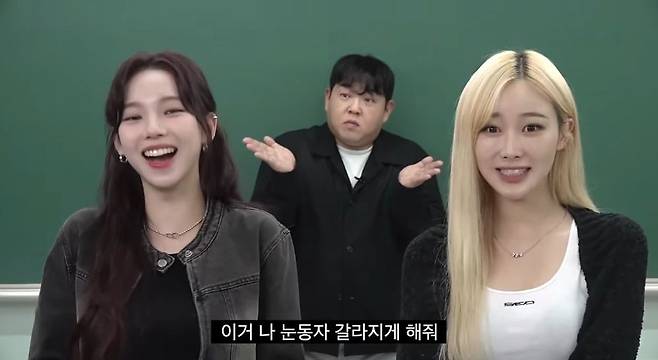 ‘문쌤’ 촬영을 마친 뒤엔 카리나도 지젤도 “너무 재밌었다”라며 입을 모았다. 이제 썸네일 용 사진을 찍을 차례. 카리나와 지젤 사이에 선 문상훈은 “나 눈동자 갈라지게 해 달라”는 주문으로 웃음을 자아냈다.