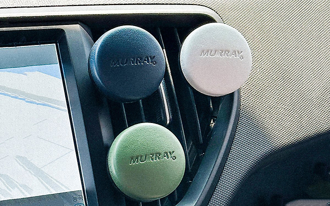 머레이 크리스탈린 왁스 가죽 차량용 방향제 M-CENT는 어디에나 어울리는 원형 디자인에 차분하면서도 고급스러운 느낌의 가죽 소재를 사용해 차량 내부의 인테리어를 해치지 않고 고급스러움을 더해준다. 또한 자석 탈부착 방식으로 왁스 태블릿의 교체가 간편하며, 생활화학제품 KC 안전인증을 필한 국내 제조 왁스이기 때문에 안심하고 사용할 수 있다는 점에서도 큰 점수를 줄 수 있다.