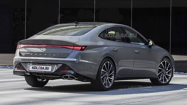 러시아 Kolesa.ru가 공개한 렌더링에 따르면 새로운 쏘나타는 스타리아를 통해 소개된 우주선 이미지가 적용됐다. 스타리아와 앞으로 출시될 신형 그랜저에 이어 3번째다. 소비자 반응에 따라 향후 다양한 신차도 유사한 디자인 특징이 적용될 수 있다.