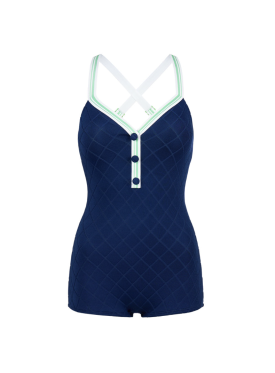 다양한 컬러감과 스포티한 무드가 더해진 이 모노키니는 이번 여름 휴양지 룩으로 제격이다.