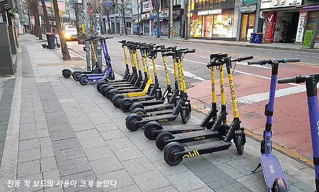 이들 2륜차 중에서 특히 전동 킥 보드만 살펴본다면, 한국교통안전공단 자료에서 2019년에 96,000대이던 전동킥보드가 2020년에는 145,000대로 급증하였고, 그에 따른 교통 사고도 늘어나고 있다고 한다.
