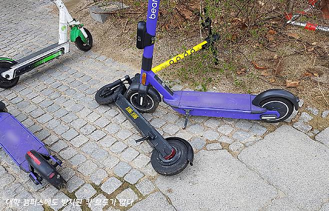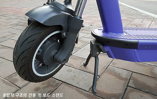 전동 킥 보드 주차와 관련한 문제도 적지 않다. 이에 따라 전동 킥 보드와 기존의 자전거, 모터사이클 등 2륜차의 주차나 차체 지지를 위해 설계된 킥 스탠드(kick stand)의 구조 재검토도 필요하다.