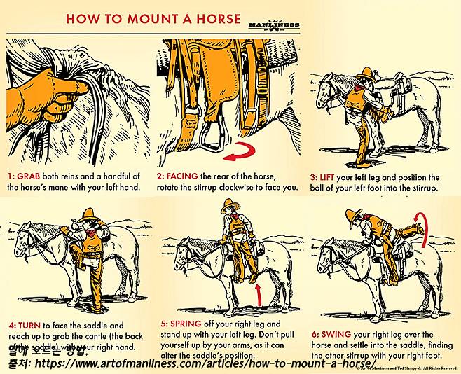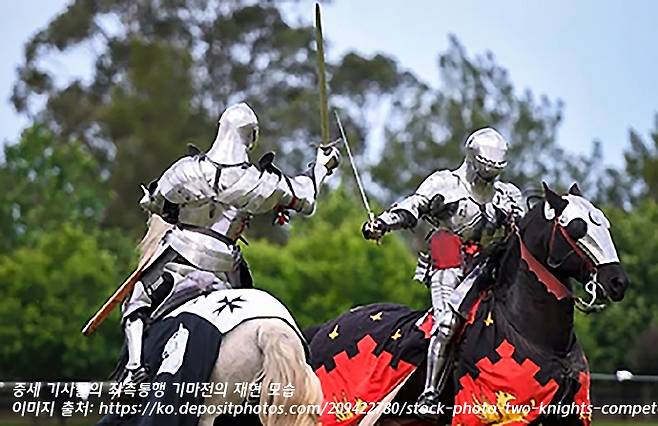 기마 전투와 관련된 관습을 살펴보면, 동서양을 막론하고 일반적으로 오른손잡이가 많았으므로 말을 탄 채 전투를 하게 되면 거의 모두 오른손에 칼이나 창을 들고 서로 길의 왼쪽으로 교차해서 싸웠다. 또한, 기마병들이 오른손으로 칼을 들거나 뽑기 위해서는 왼쪽 허리춤에 칼을 차게 됨에 따라, 말에 오를 때 말의 왼쪽에 서서 칼의 무게가 더해지지 않은 오른쪽의 다리를 먼저 올려서 말에 올라타는 방법을 썼으며, 이러한 좌측 승마 방법은 오늘날의 승마에서도 똑같이 사용되고 있다고 한다.
