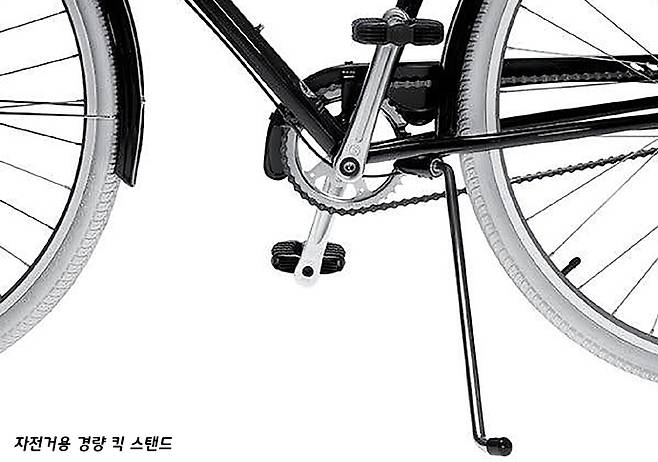 이후 1891년에 파든 틸링하스트(Pardon W, Tillinghast)가 페달에 장착되는 구조의 킥 스탠드를 고안해 사용하지 않을 때는 페달 아래에 평평하게 접혀있는 구조의 특허 받는다. 이보다 더 짧은 형태의 킥 스탠드는 1926 년에 엘든 헨더슨(Eldon Henderson)이 특허를 받았다고 하며, 1930년대에는 조셉 폴 트린(Joseph Paul Treen)이 더 작고 편리한 받침대를 개발했다고 한다.