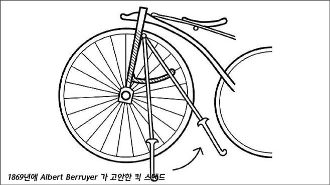 2륜 차량을 지지하기 위한 구조물로써 킥 스탠드의 가장 초기의 것은 1869년에 프랑스의 알버트 베루이어(Albert Berruyer)에 의해 설계된 것으로 알려져 있으며, 그 이후로 여러 사람에 의해 개선되었다고 한다. 초기에 제작된 킥 스탠드는 자전거의 핸들 바(handle bar)의 아래에 설치된 형태로서, 오늘날의 킥 스탠드 보다 훨씬 길었다.