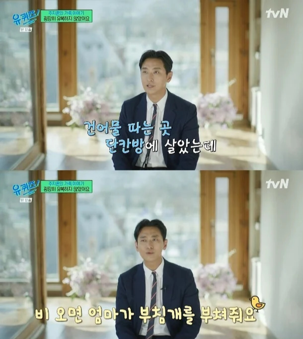 좁고 단열도 잘 안 되던 방에서 연탄불에 물을 데워 씻어야 했고, 비가 오면 미닫이문을 열어놓고 어머니가 부쳐주던 부침개가 어린 주지훈에게 가장 행복한 추억으로 남아 있다.