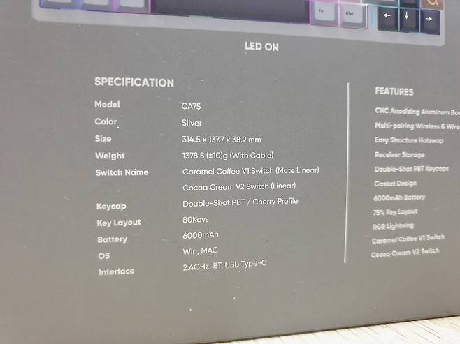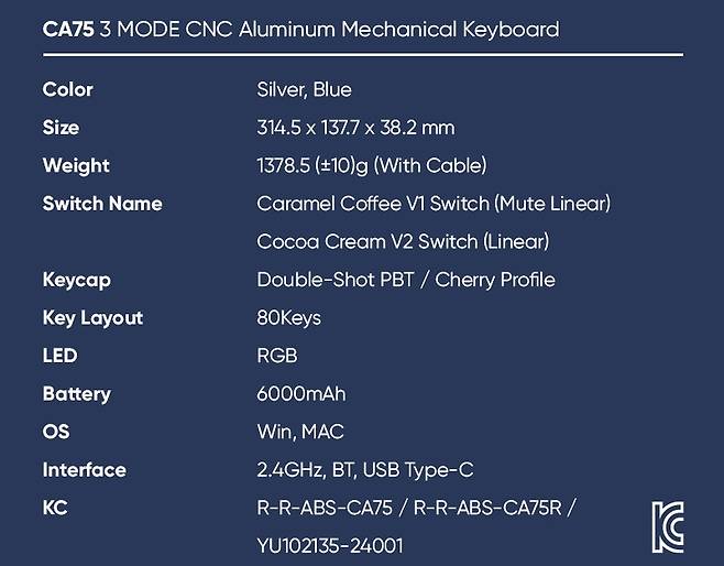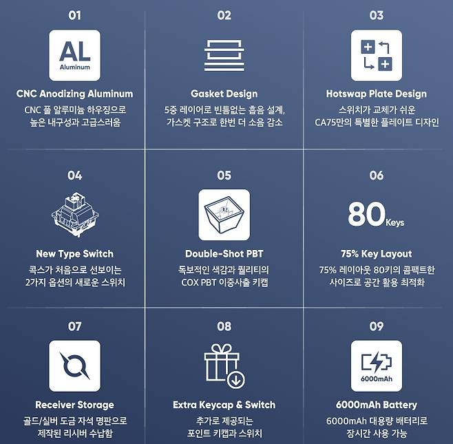 ▶COX CA75 3모드 CNC 알루미늄 유무선 기계식 키보드 (실버) 특징