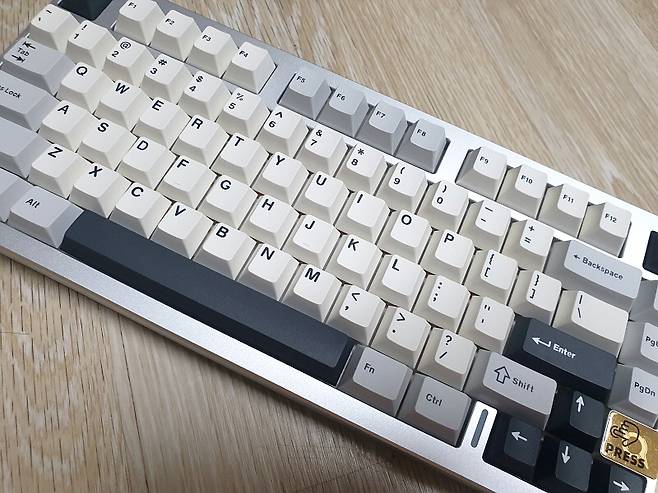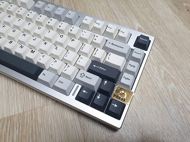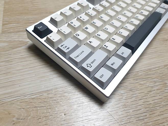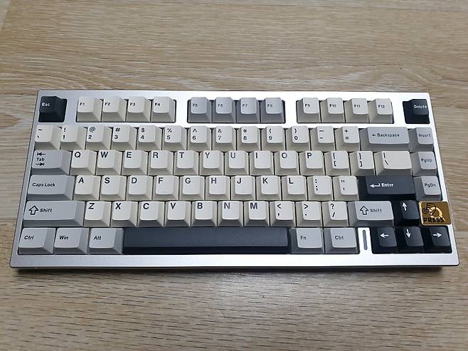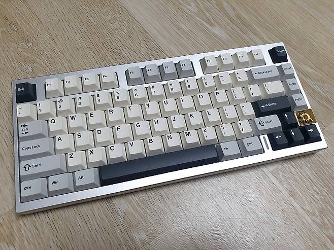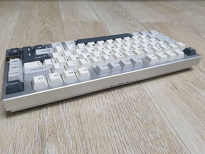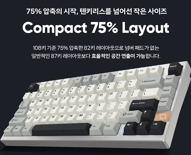 75% 레이아웃 80키의 컴팩트한 크기에 실버 풀 알루미늄 하우징으로 텐키리스 디자인입니다.