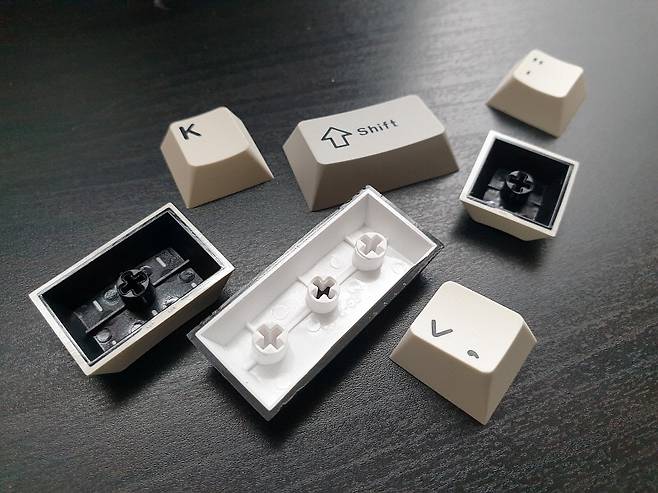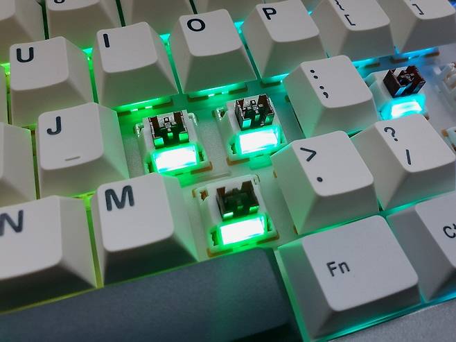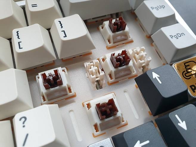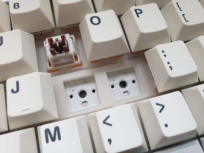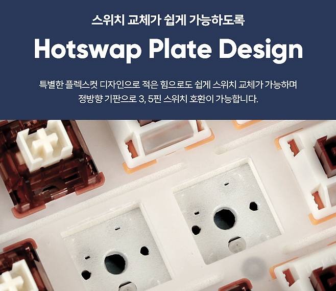 니다. 핫스왑 방식의 설계로 스위치 고장시에 쉽게 교체가 가능합니다. 키캡은 PBT 이중 사출 구