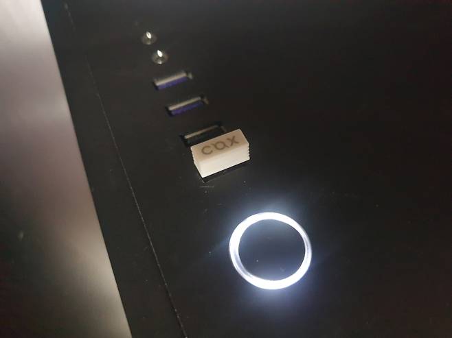 방향키 왼쪽으로 상태 표시 LED가 있고, 오른쪽에는 PRESS 손가락 표기 커버가 있습니다.