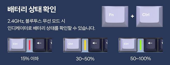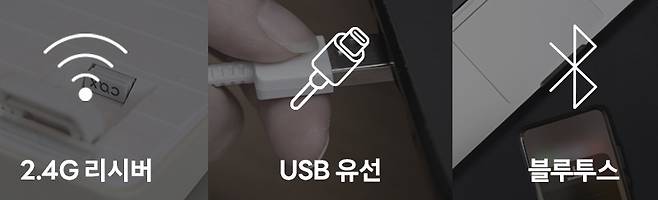 - 3모드(유선, 무선(2.4G), 블루투스) 지원, Mac/윈도우즈 OS 변환 스위치