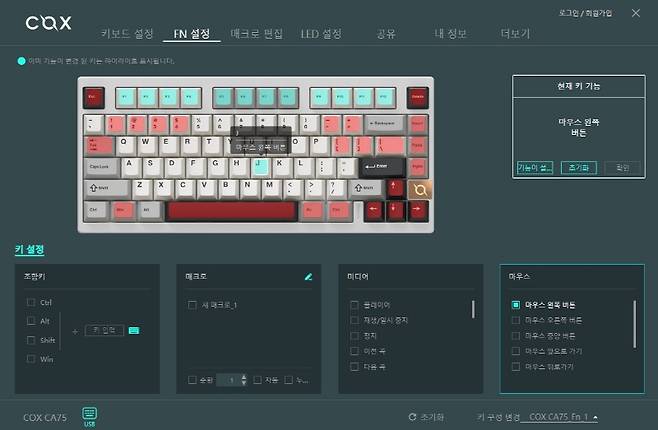 FN 메뉴입니다. FN 키와 같이 단축키를 설정할 수 있으며 마우스 버튼도 가능합니다.