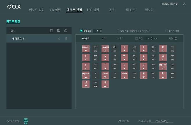 매크로 메뉴입니다. 키보드와 마우스 동시에 가능합니다.