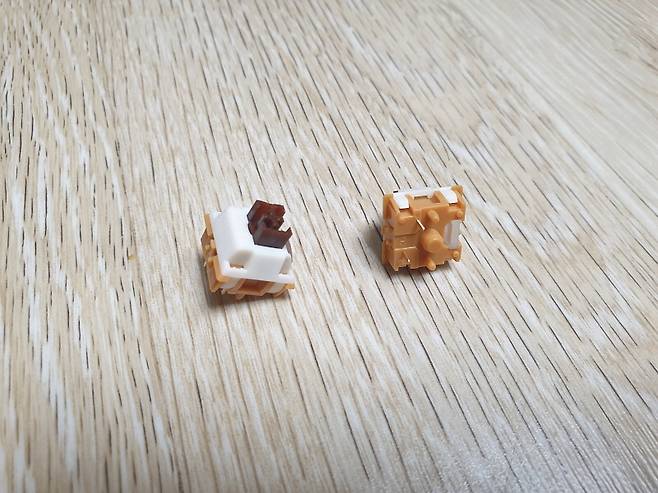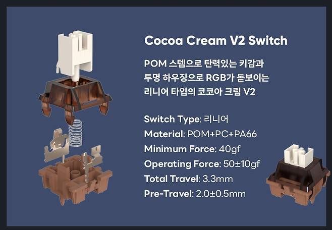 콕스가 처음 선보이는 카라멜 커피 스위치(저소음리니어)와 코코아 크림 스위치(리니어)가 있습