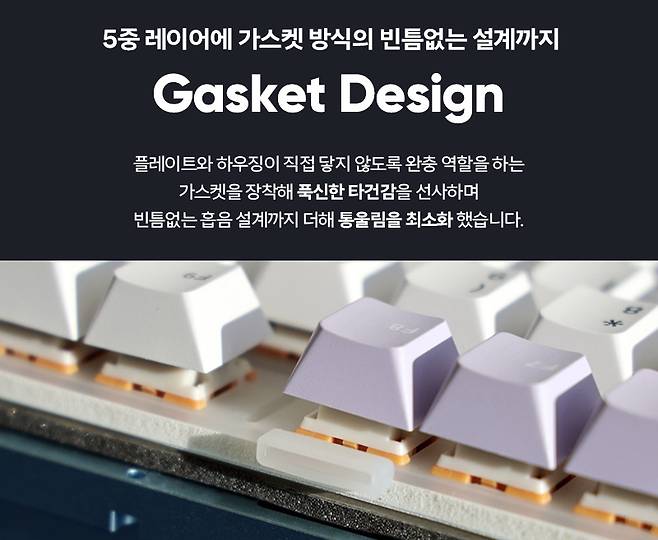 - 5중 레이어 장착의 흡음 설계 및 가스켓 장착으로 타건감과 통울림 최소화