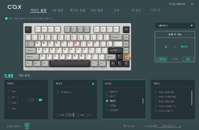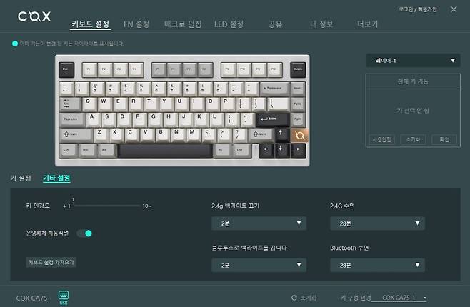 콕스 CA75 3모드 CNC 알루미늄 유무선 기계식 키보드는 75% 레이아웃 80키의 컴팩트한 크기