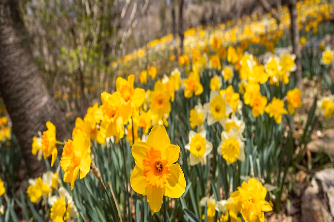 경기도 광주에 위치한 화담숲은 고즈넉한 숲길을 따라 봄 수선화가 수십만 송이씩 피어나는 것으로 유명합니다. 특히 이곳의 자작나무 숲은 독특한 풍경을 선사해 사진 촬영을 즐기는 이들에게 인기가 높습니다.