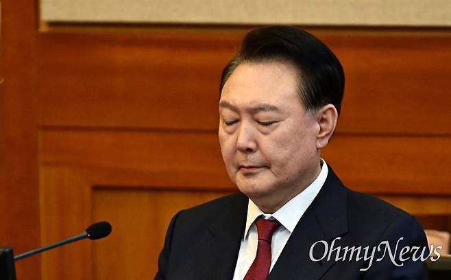 | ▲ 내란 우두머리 혐의로 구속된 윤석열 대통령이 23일 오후 서울 종로구 헌법재판소에서 열린 탄핵 심판 4차 변론기일에 출석해 있다. |