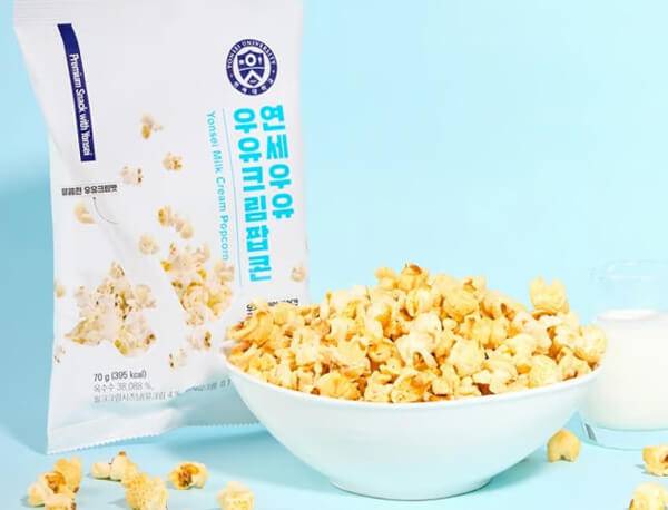 편의점 CU는 ‘연세우유 우유크림 팝콘’의 누적 판매량이 20만 개를 넘어서며 인기를 끌고 있다고 밝혔다. 연세우유 팝콘은 CU의 히트 상품인 연세우유 크림빵의 우유크림맛을 시즈닝으로 넣은 상품이다. 이 제품은 CU 전용 스낵 카테고리 매출 1위를 차지했다. 고소하면서도 달콤한 우유의 향을 은은하게 느낄 수 있으며, 팝콘의 바삭함은 우유의 풍미를 한층 더한다. 편의점 판매가는 1,800원이다.