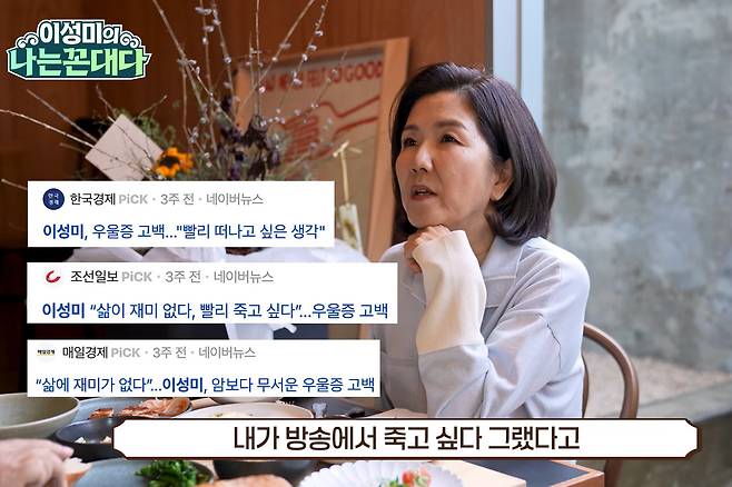 이성미는 "암에 걸렸을 때도 '이제 죽는구나, 너무 좋다'는 생각을 했다"며 "즐거움이 없다. 깔깔 웃다가도 집에 오는 길엔 허하고, 인생이 덧없다"고 솔직한 심정을 밝혔습니다.😢