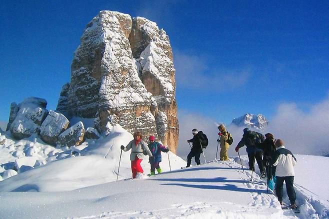 돌로미티의 상징적인 다섯 개의 봉우리로, 시간대와 보는 방향에 따라 색다른 풍경을 선사합니다. 곤돌라를 타고 정상에 오르면 자연 속에서 힐링하며 독특한 바위 형상을 감상할 수 있습니다.