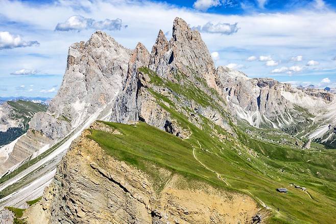 돌로미티는 이탈리아 북부에 위치한 알프스 산맥의 동쪽 끝자락으로, 유네스코 세계자연유산으로 지정된 곳입니다.